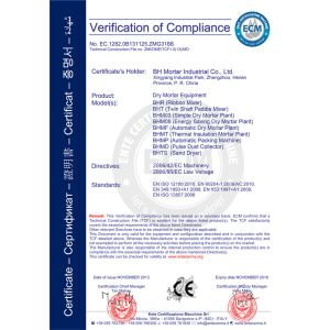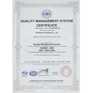 With strict quality management, BH Mortar Industrial Co., Ltd has passed the ISO9001:2008 certificate, and our dry mortar plant has CE certificates. We have been awarded by Henan government as Credit Unit many times, and been chosen as provincial famous brand.
